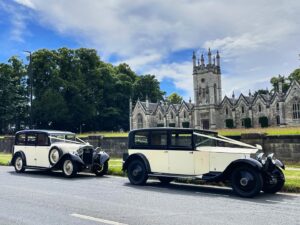 All of our wedding cars are in mason black and ivory/old English white livery.